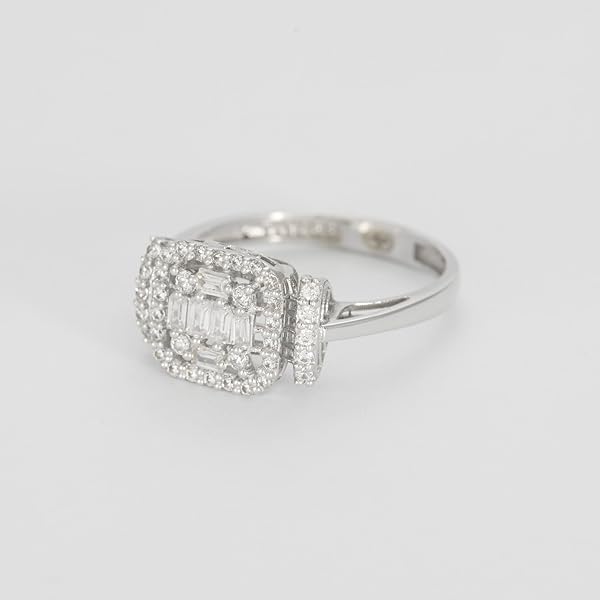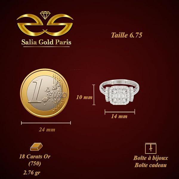 Bague en or blanc 18 carats – 2.76 gr Or blanc 750/1000 – design carré serti de pierres blanches – Élégance géométrique – Salia Gold Paris€728