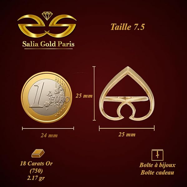 Bague en or jaune 18 carats – 2.17 gr Or jaune 750/1000 – design ajouré en forme de cœur stylisé – Élégance contemporaine – Salia Gold Paris€576