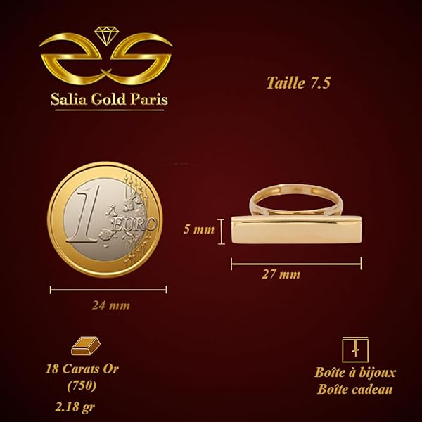Bague en or jaune 18 carats – 2.18 gr Or 750/1000 – design rectangulaire élégant – Style moderne et raffiné – Salia Gold Paris€576