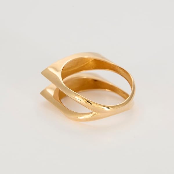 Bague en or jaune 18 carats – 2.88 gr Or jaune 750/1000 – design double bande mat et poli – Élégance contemporaine – Salia Gold Paris€760