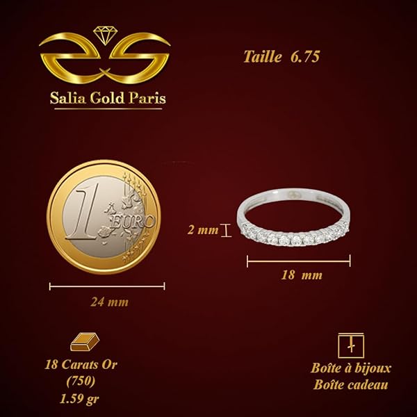 Bague or blanc 18 carats 1,59 gr Or 750/1000 – Demi-alliance diamants ronds sertis griffes – Élégance intemporelle & raffinement joaillier – Salia Gold Paris€420