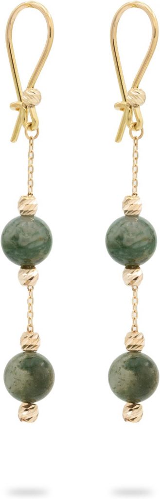 Women’s 18K Yellow Gold Drop Earrings – 1/27g Gold 750/1000 Fine Chain with Natural Green Stones – Elegant Jewellery Comes with Gift Box – Salia Gold Paris
