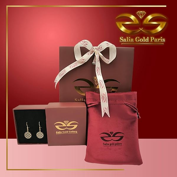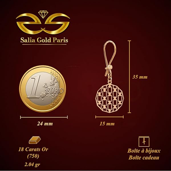 Boucles d’oreilles pendantes femme or jaune 18 carats –2.04 gr – Design géométrique dodécagonal ajouré – Cadeau femme original livré avec boîte – Salia Gold Paris€414