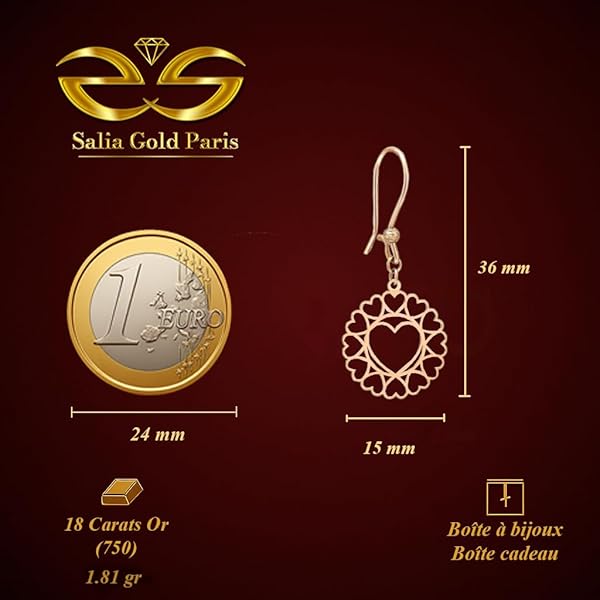 Boucles d’oreilles pendantes femme or jaune 18 carats – Motif cœur romantique ajouré – 1.81 gr Or 750/1000 – Cadeau raffiné et original pour femme – Salia Gold Paris€420