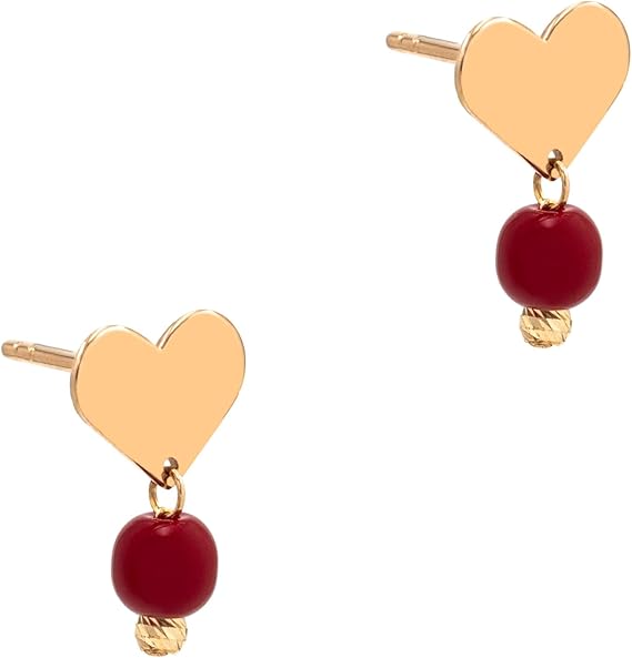 18K Yellow Gold Women’s Heart Stud Earrings – Romantic Design with Red Pearl – Elegant Gift Idea Salia Gold Paris