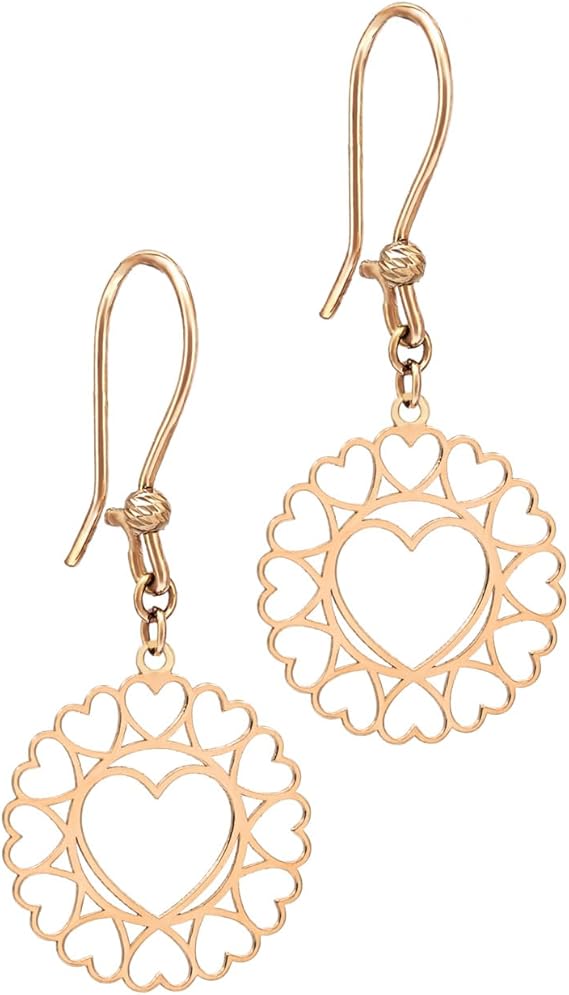 Boucles d’oreilles pendantes femme or jaune 18 carats – Motif cœur romantique ajouré – Cadeau raffiné et original pour femme – Salia Gold Paris