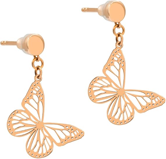 Women’s 18K Yellow Gold Stud Earrings – Hypoallergenic Hollow Butterfly Drop Earrings – 1.5 g – Original and Elegant Gift Idea for Women – Salia Gold Paris