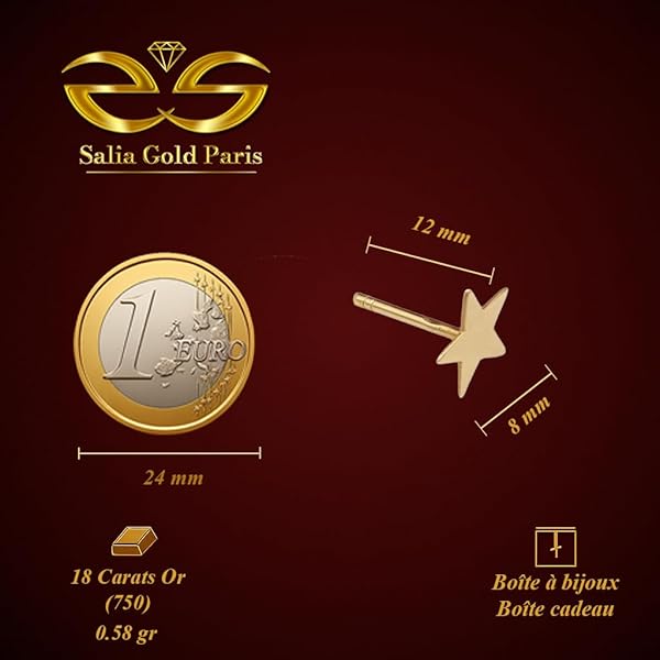 Boucles d’oreilles puces or jaune 18 carats 0.58gr Or 750/1000 – design étoile minimaliste, finition polie artisanale – Salia Gold Paris€135