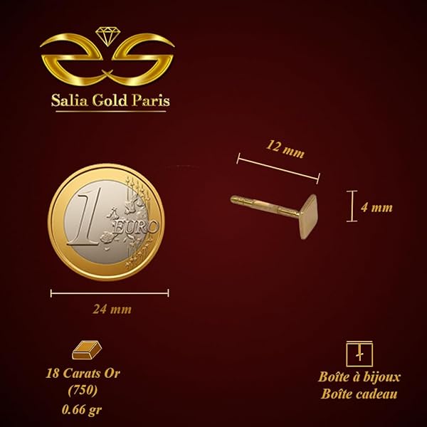Boucles d’oreilles puces or jaune 18 carats – 0.66 gr Or 750/1000 – design carré minimaliste et géométrique – élégance moderne – Salia Gold ParisAvailability: 1 in stock