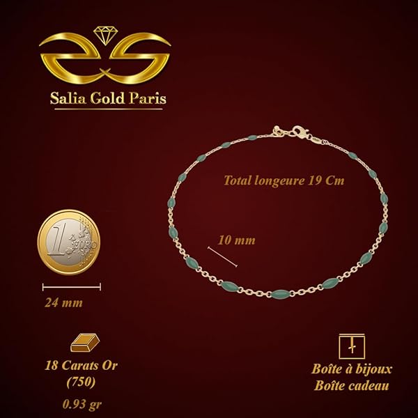 Bracelet en or jaune 18 carats – 0.93 gr Or 750/1000– Design délicat émaillé gris-vert – Élégance raffinée – Garantie 5 ans – Salia Gold ParisBracelet en or jaune 18 carats – 0.93 gr Or 750/1000– Design délicat émaillé gris-vert – Élégance raffinée – Garantie 5 ans – Salia Gold Paris