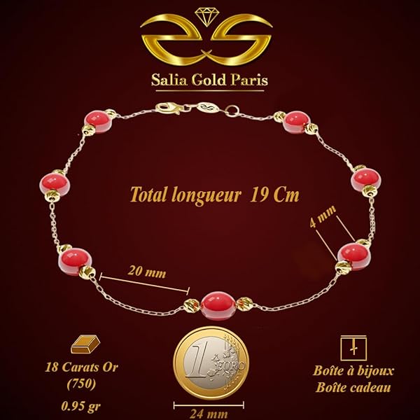 Bracelet en or jaune 18 carats avec pierres rouges brillantes – Design raffiné et éclat intemporel 0.95 gr Or 750/1000 sans pierres – Cadeau élégant – Salia Gold Paris€252