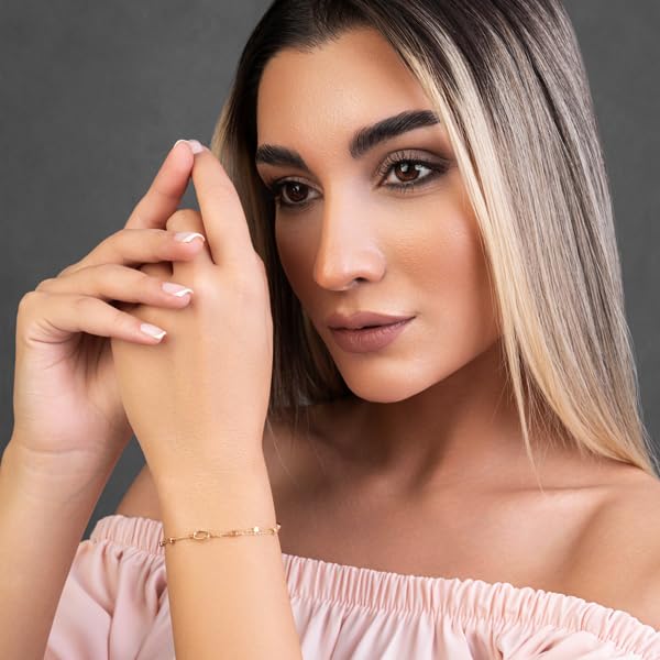 Bracelet en or jaune 18 carats – Design graine Ovale avec perles cubiques – 2 gr Or 750/1000 Élégance contemporaine – Salia Gold ParisAvailability: 10 in stock