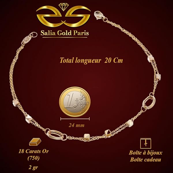Bracelet en or jaune 18 carats – Design graine Ovale avec perles cubiques – 2 gr Or 750/1000 Élégance contemporaine – Salia Gold Paris€464