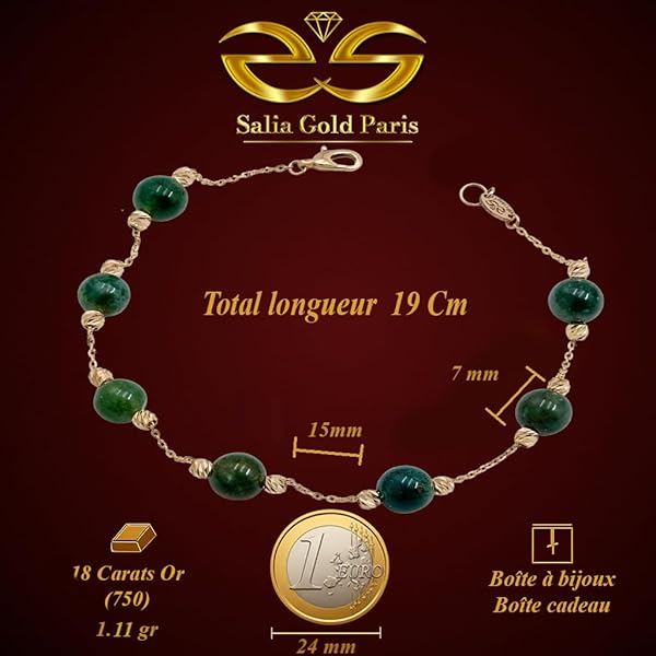 Bracelet femme or jaune 18 carats – Style raffiné avec pierres vertes naturelles 1.11 gr Or 750/1000 – Cadeau précieux et intemporel – Salia Gold Paris€260