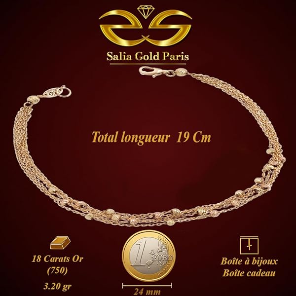 Bracelet femme or jaune et blanc 18 carats – Multi-chaînes avec perles facettées 3.2 gr Or 750/1000 – Bijou raffiné et lumineux – Salia Gold Paris€865