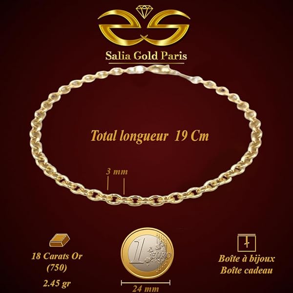 Bracelet Noura en or jaune 18 carats – Maillons ronds 3 mm 2.45gr – Élégance discrète et intemporelle – Salia Gold ParisAvailability: 10 in stock