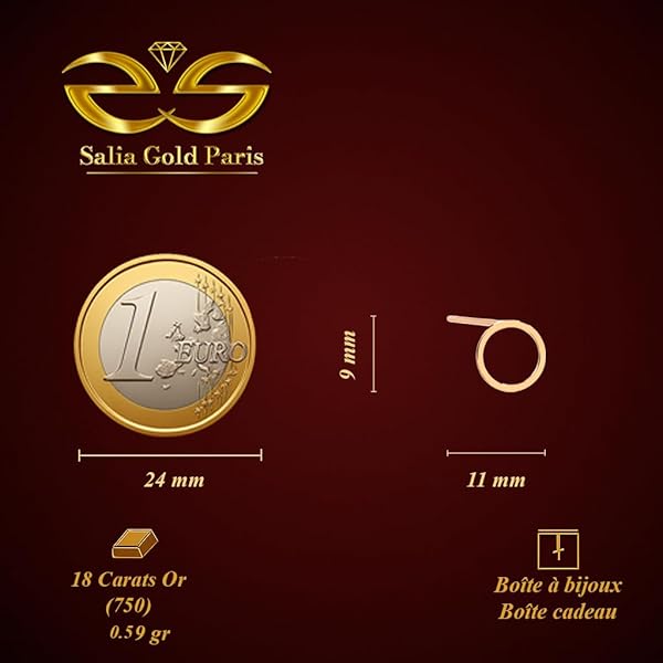 Clous d’oreilles femme or jaune 18 carats – 0.59 gr Or 750/1000 – Boucles circulaires discrètes hypoallergéniques – Bijoux élégant livré avec boîte cadeau – Salia Gold ParisAvailability: 10 in stock