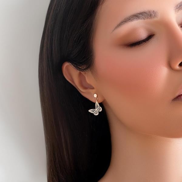 Clous d’oreilles femme or jaune 18 carats – Boucles pendantes papillon ajouré hypoallergéniques – 1.36 gr – Idée cadeau femme originale et élégante – Salia Gold ParisAvailability: 10 in stock