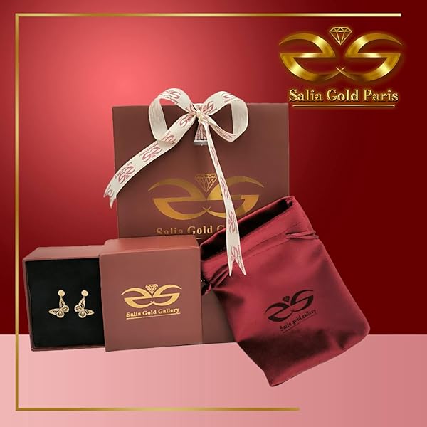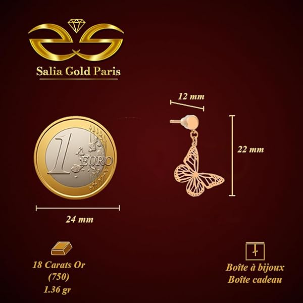 Clous d’oreilles femme or jaune 18 carats – Boucles pendantes papillon ajouré hypoallergéniques – 1.36 gr – Idée cadeau femme originale et élégante – Salia Gold Paris€316