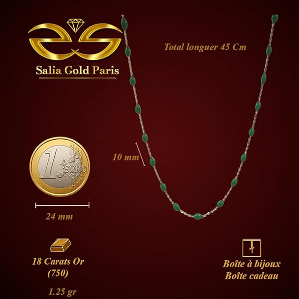 Collier en or jaune 18 carats – 1.25 gr Or 750/1000 – Chaîne délicate émaillée turquoise – Élégance intemporelle – Salia Gold Paris€384