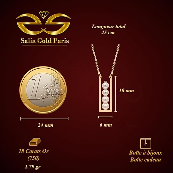 Collier femme or jaune 18 carats – Design vertical avec 4 perles blanches 1/79 gr Or sans perle – Élégance sobre et bijou poétique – Salia Gold ParisAvailability: 10 in stock