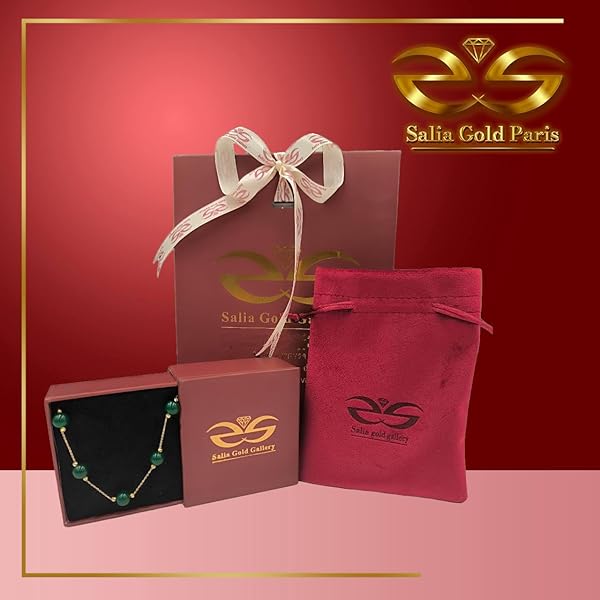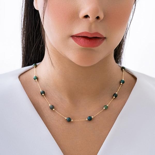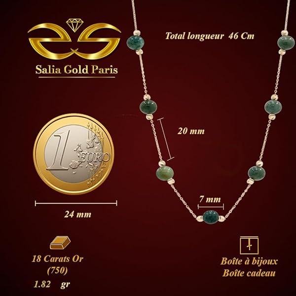 Collier femme or jaune 18 carats – Pierres vertes naturelles et perles dorées 1.82 gr Or 750/1000 – Élégance lumineuse et design intemporel – Salia Gold Paris€487