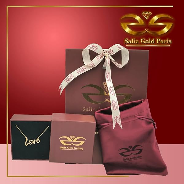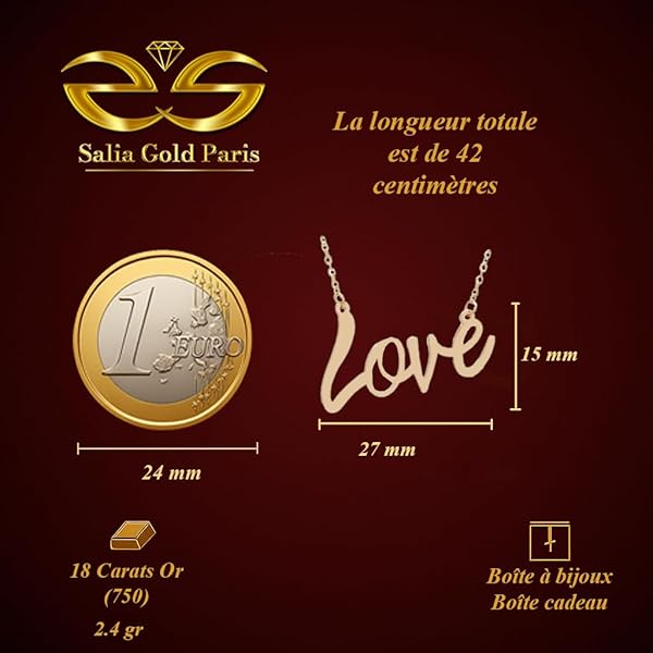 Collier LOVE femme or jaune 18 carats – Motif romantique et pendentif gravé – 2.4 gr Or 750/1000 Cadeau parfait pour Saint-Valentin ou anniversaire – Salia Gold ParisAvailability: 10 in stock
