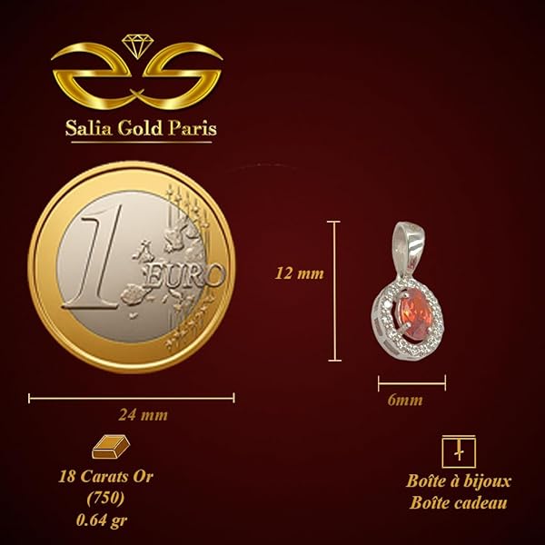 Pendentif or blanc 18 carats 0.64g Or 750/1000 – Design ovale avec pierre centrale facettée orange et pavage de pierres blanches scintillantes – Salia Gold Paris€141