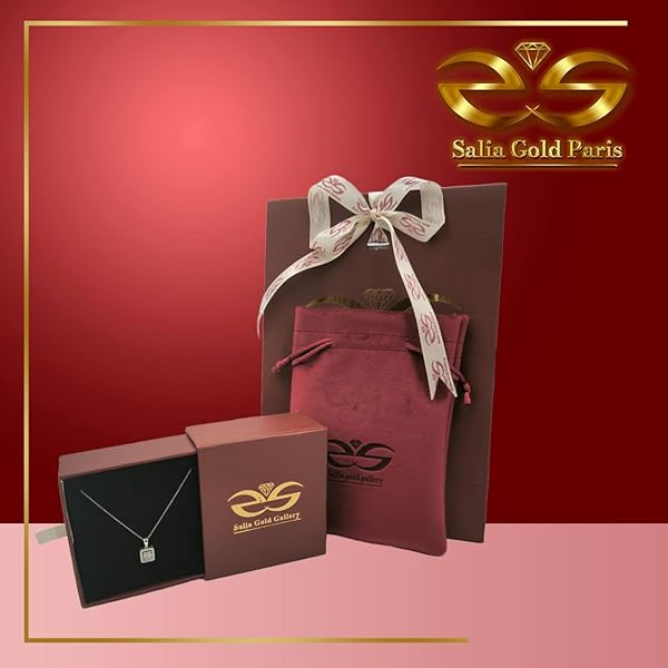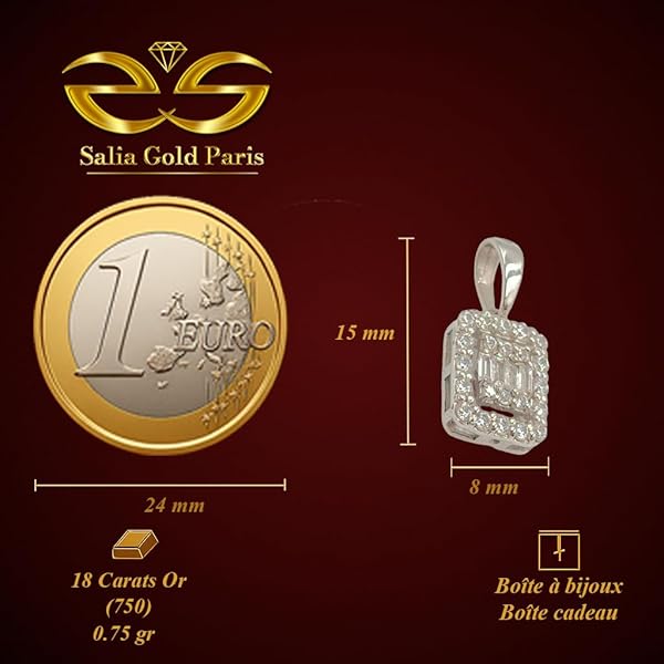Pendentif or blanc 18 carats 0.75gr Or 750/1000 – Design carré avec pierres blanches et baguettes scintillantes – Salia Gold Paris€170