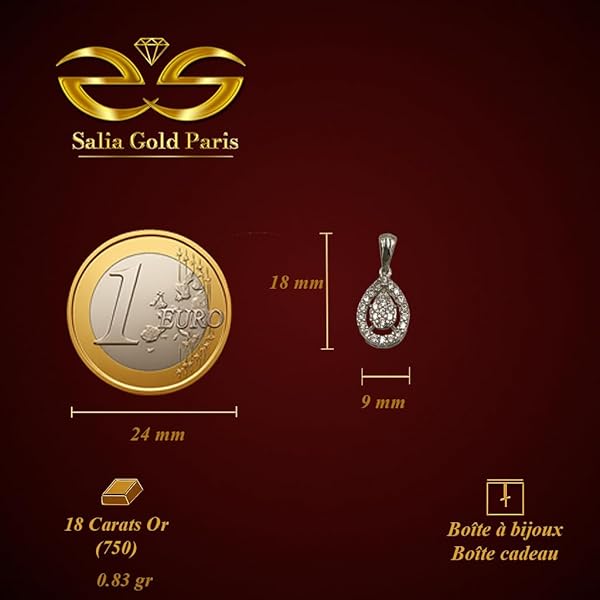 Pendentif or blanc 18 carats 0.83gr Or blanc 750/1000 forme goutte serti pierres rondes – Design élégant et raffiné – Salia Gold Paris€253