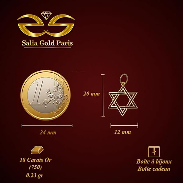 Pendentif or jaune 18 carats 0.23g – Étoile à six branches symbolique – Bijou artisanal raffiné – Salia Gold ParisAvailability: 1 in stock