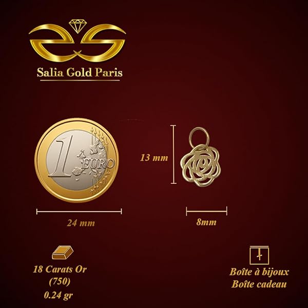 Pendentif or jaune 18 carats 0.24gr Or 750/1000 – Fleur de Rose élégante – Bijou raffiné et artisanal – Salia Gold Paris€96