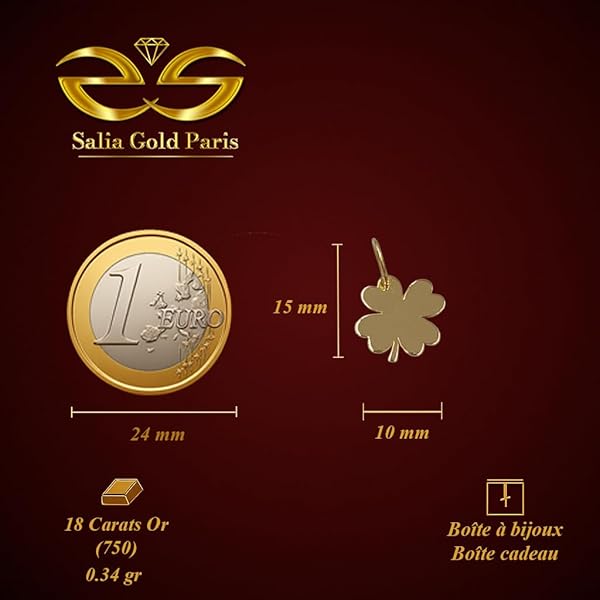 Pendentif or jaune 18 carats 0.34gr Or 750/1000 – Feuille de trèfle porte-bonheur – Bijou artisanal raffiné – Salia Gold ParisPendentif or jaune 18 carats 0.34gr Or 750/1000 – Feuille de trèfle porte-bonheur – Bijou artisanal raffiné – Salia Gold Paris