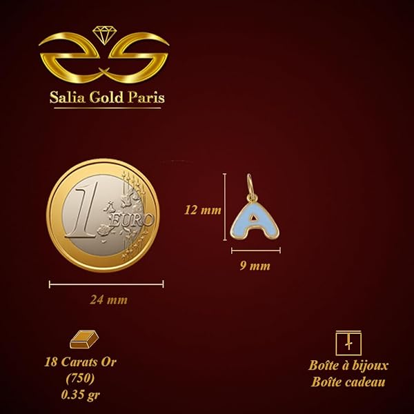 Pendentif or jaune 18 carats 0.35gr Or 750/1000 lettre A émaillé bleu ciel – design minimaliste et raffiné – Salia Gold Paris€132