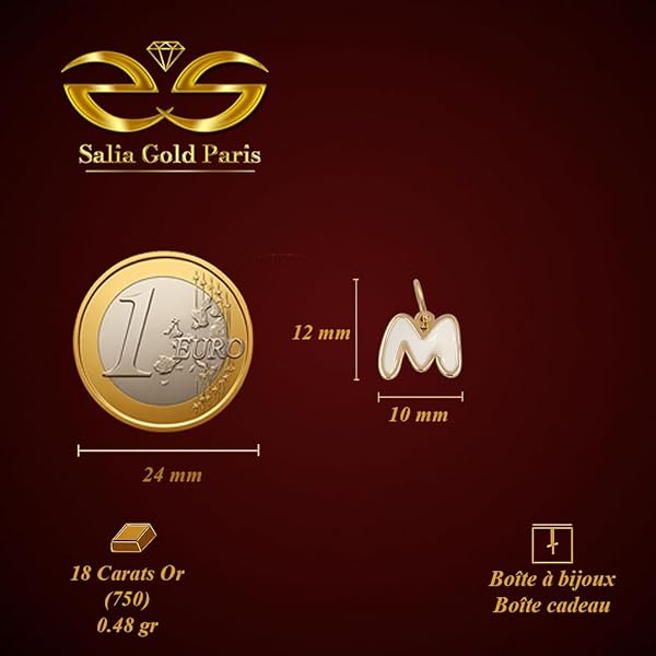 Pendentif or jaune 18 carats 0.48gr Or 750/1000 lettre M émaillé blanc – design minimaliste et élégant – Salia Gold Paris€132