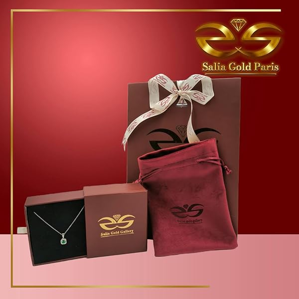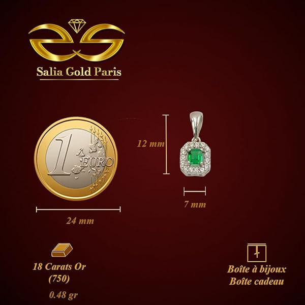 Pendentif or jaune 18 carats 0.48gr Or blanch 750/1000 – Design carré avec pierre verte émeraude et halo de pierres blanches – Salia Gold Paris€146
