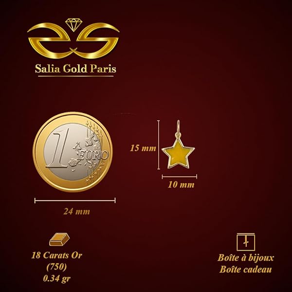 Pendentif or jaune 18 carats 0,34 gr Or 750/1000 Étoile à cinq branches émaillée Jaune – Détails Artistiques Fins – Salia Gold Paris€132
