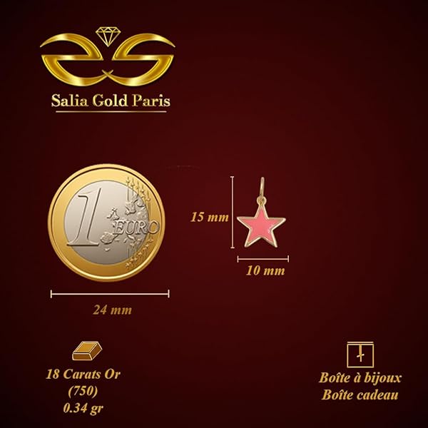 Pendentif or jaune 18 carats 0,36 gr Or 750/1000 Étoile à cinq branches émaillée Rose – Détails Artistiques Fins – Salia Gold Paris€132