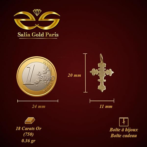 Pendentif or jaune 18 carats 0,36gr Or 750/1000 croix élégante bijou artisanal garanti 5 ans Salia Gold ParisAvailability: 1 in stock