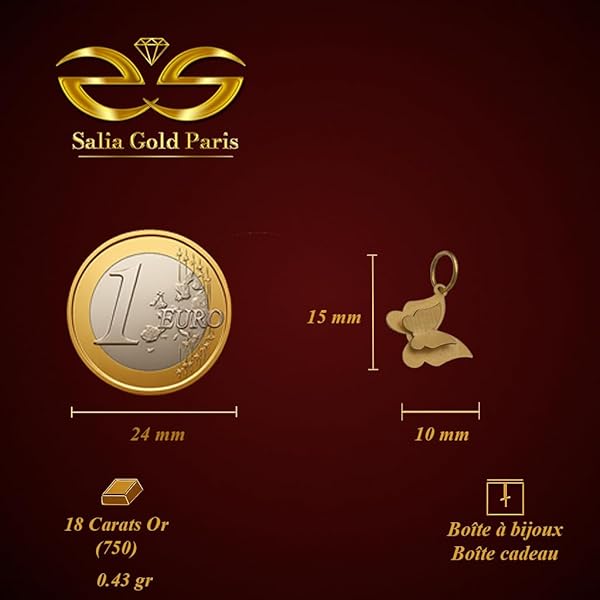Pendentif or jaune 18 carats 0,43gr Or 750/1000 papillon ajouré avec petit papillon intérieur – finition mate élégante – Salia Gold Paris€89